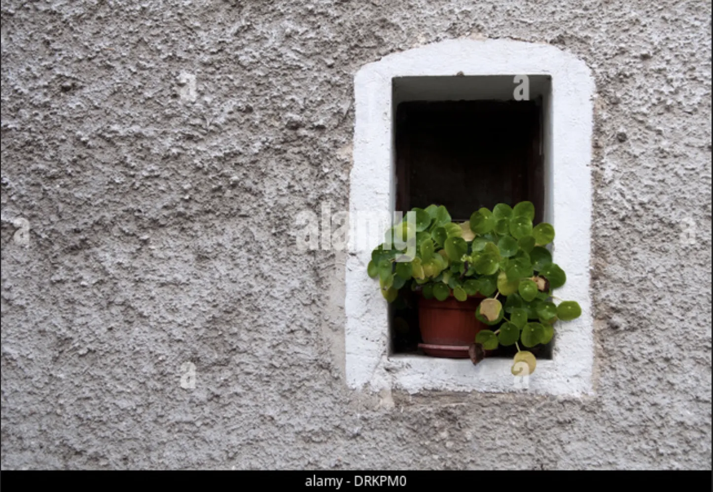 Response: "The image portrays a section of a wall with a small, arched opening, containing a terra cotta pot of greenery. One might observe the surrounding wall's textured, neutral tones and the stark simplicity of the scene, appearing to emphasize the lone splash of life amidst an expanse of emptiness. The green leaves seem to cling to the pot, suggesting a yearning for companionship or warmth in the limited space available. The minimal features of the setting could evoke a sense that the area, devoid of additional decorative elements, might feel quiet and possibly isolated. This portrayal may lead some to reflect on how such simplicity in design can influence perceptions of liveliness and coziness in a space.”