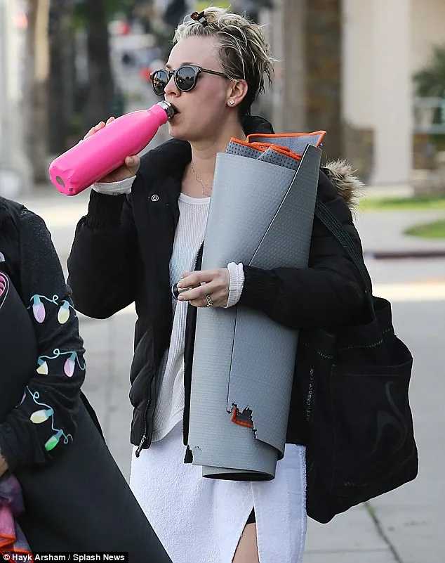 Response: "Clutching a rolled-up mat and a water bottle, she trudged through the street, her gaze focused on the ground. Each step weighed heavier than the last. The pink bottle barely tasted sweet anymore; it was just a necessary stopgap on the way. Her sunglasses reflected the biting cold that matched her mood. The bag on her shoulder felt like a lead anchor, a constant reminder of the inevitable routine ahead. Maybe tomorrow would be different, but for now, she was just maneuvering through the motions."