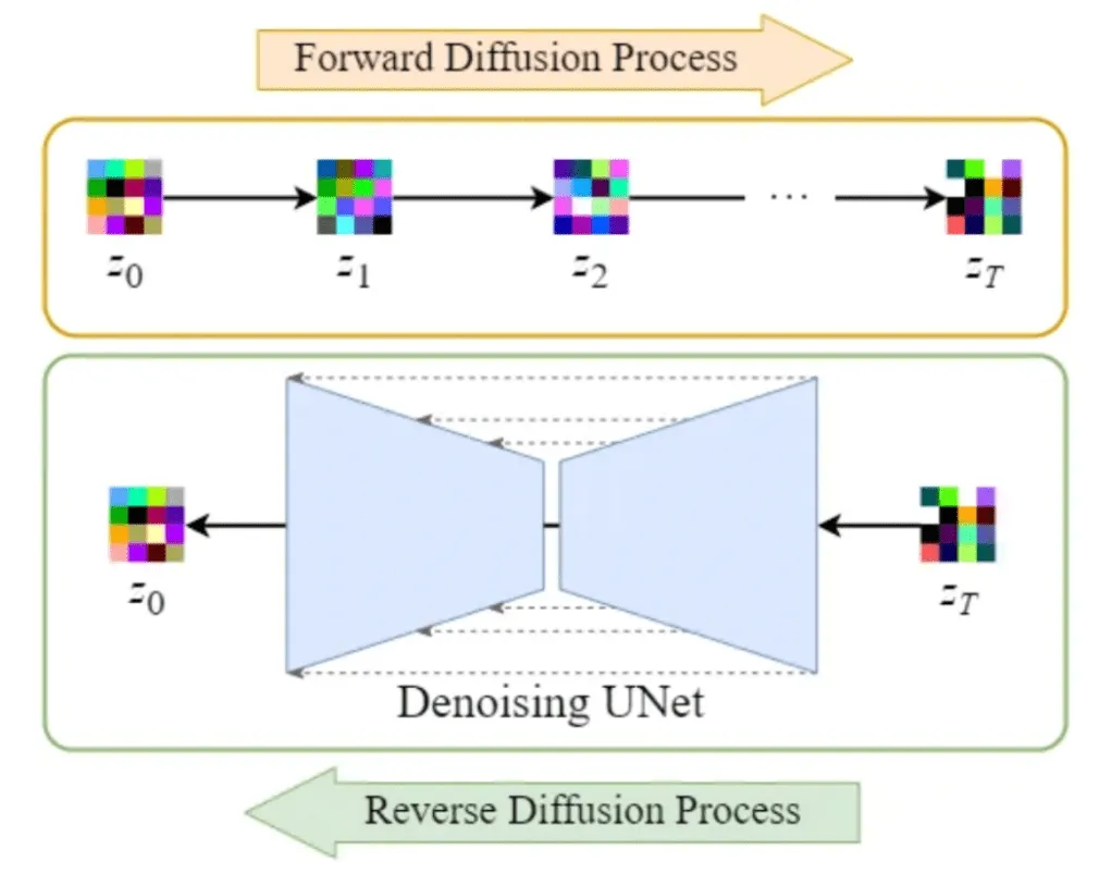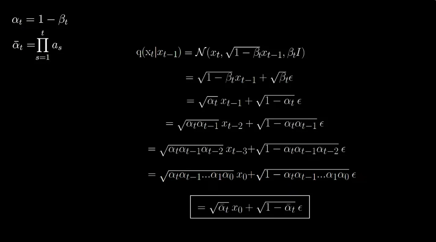 - Over many steps, the variance of the noise (controlled by βt) becomes smaller, meaning the randomness introduced decreases over time.
