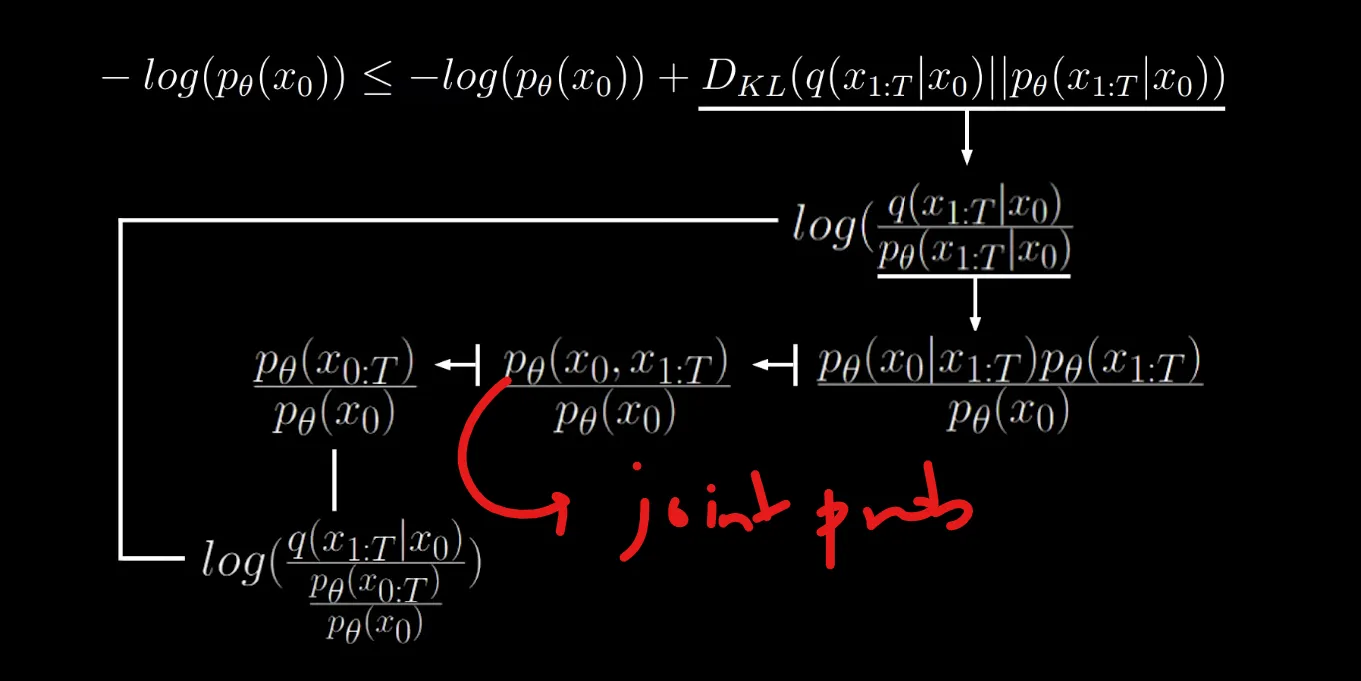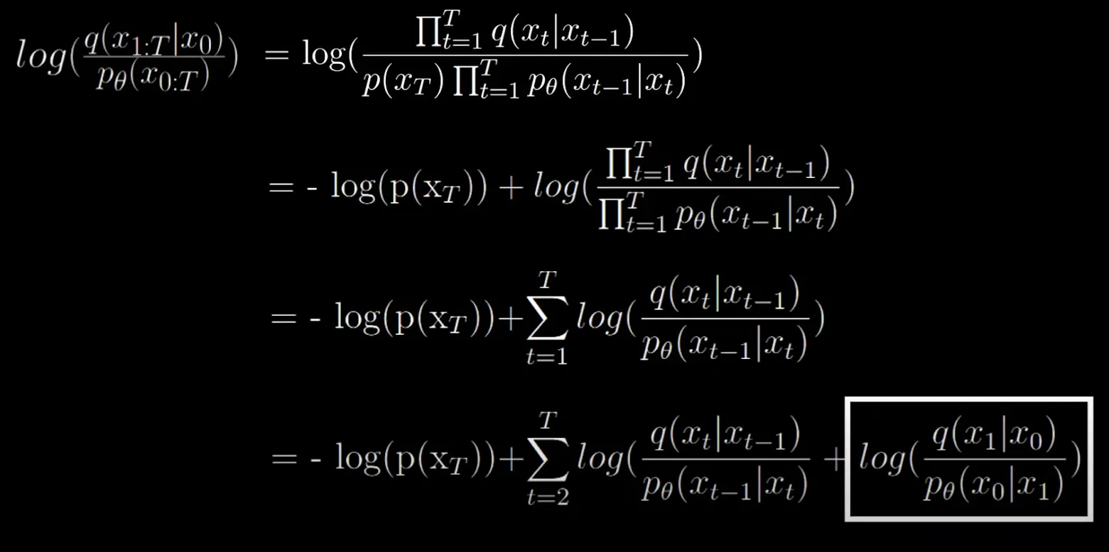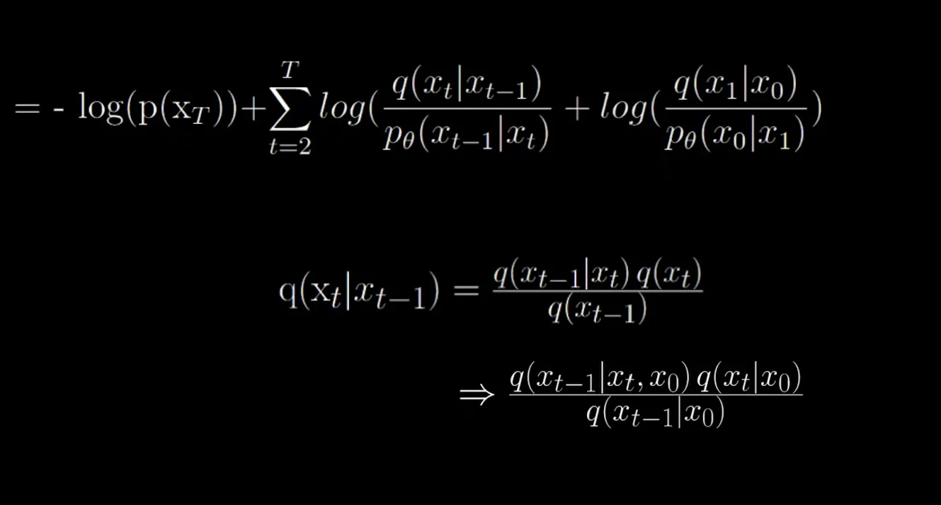 If we want to model x0, marginalize or integrate over all the different ways or trajectories we could reconstruct, but this is intractable, but, a lower bound can be estimated. Since it’s not tractable, we have to go step-wise, and cant denoise all at one step.